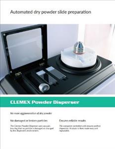Clemex Toz Disperseri, optik mikroskop ile görüntü analizi için cam slaytlarda kolayca gözlemlenip ölçülebilmeleri için partikülleri “uncluster” için kullanılan kuru, serbest akışlı bir toz dağıtıcıdır.